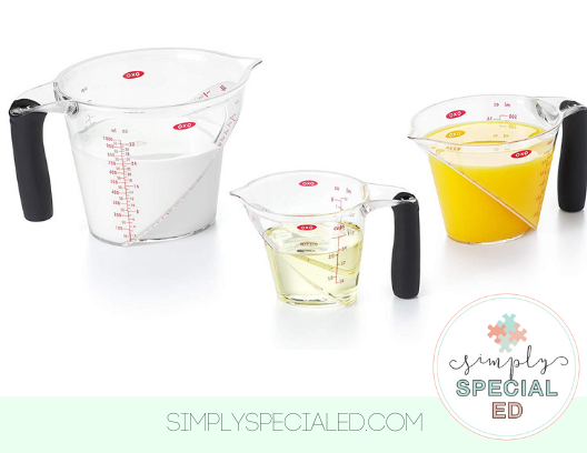 Cooking in the classroom with students with physical disabilities and fine motor weakness can make adapting each recipe a challenge. I was lucky to work in schools who supported getting students the adapted tools they needed to participate in every activity- and I’m sharing my favorite adapted cooking tools with you!