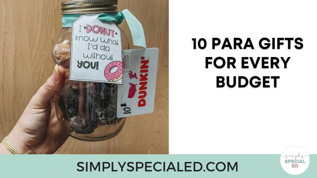 Paraprofessional gifts don’t have to expensive and time consuming. They can be simple, meaningful and budget friendly! Next time you need a gift for your paraprofessional, refer back to this list! To find more para gift ideas, check out this blog, https://www.simplyspecialed.com/holiday-gifts-for-paras/.