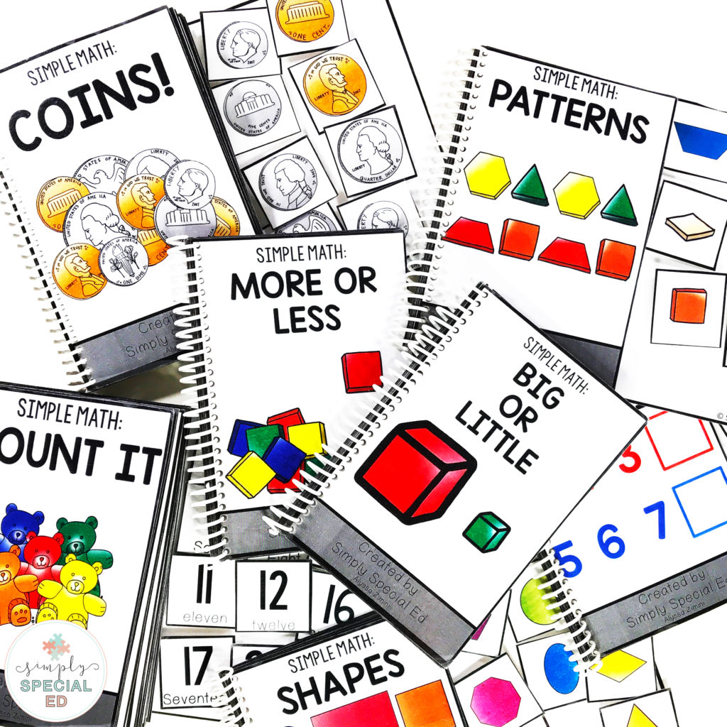 These adapted books are a part of my Simple Math Curriculum. You can buy the full curriculum (books, file folders, and workbook) for these topics HERE.