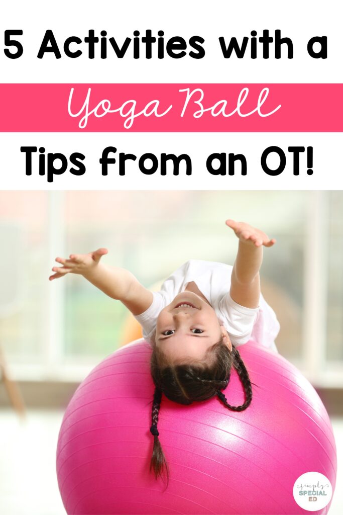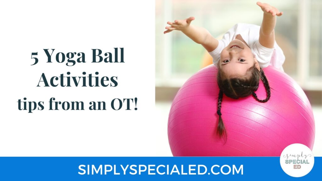 Do you want to make your occupational therapy (OT) sessions not only more fun, but also extremely helpful to students? With the use of a yoga ball, your kiddos will be totally engaged while developing a ton of skills! Our therapy department has a few in our sensory rooms to use during OT sessions. These are relatively inexpensive and last for quite a while! I find them to be a great investment. Here are five simple ideas for OT activities that use a yoga ball!