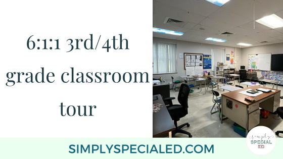 Here is a tour of my 6:1:1 3rd/4th grade classroom! It can be difficult to find the best way to set up your classroom, no matter what you teach and how many years of experience you have. Since my school serves students with severe behaviors and emotional disabilities, I believe it is best to keep my classroom as open as possible. When there are lots of physical barriers for students, or “clutter”, it can be over stimulating and cause more behavior issues.