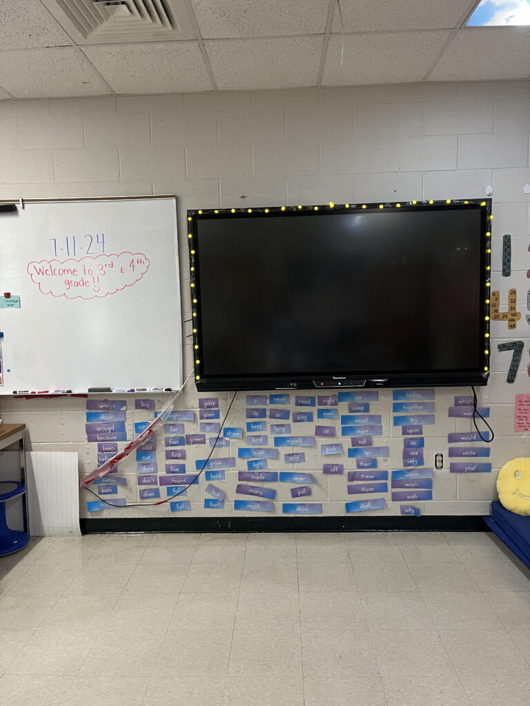 Pictured above is the front of my classroom with our word wall, promethean board, and whiteboard. This picture was taken on the first day of summer school.