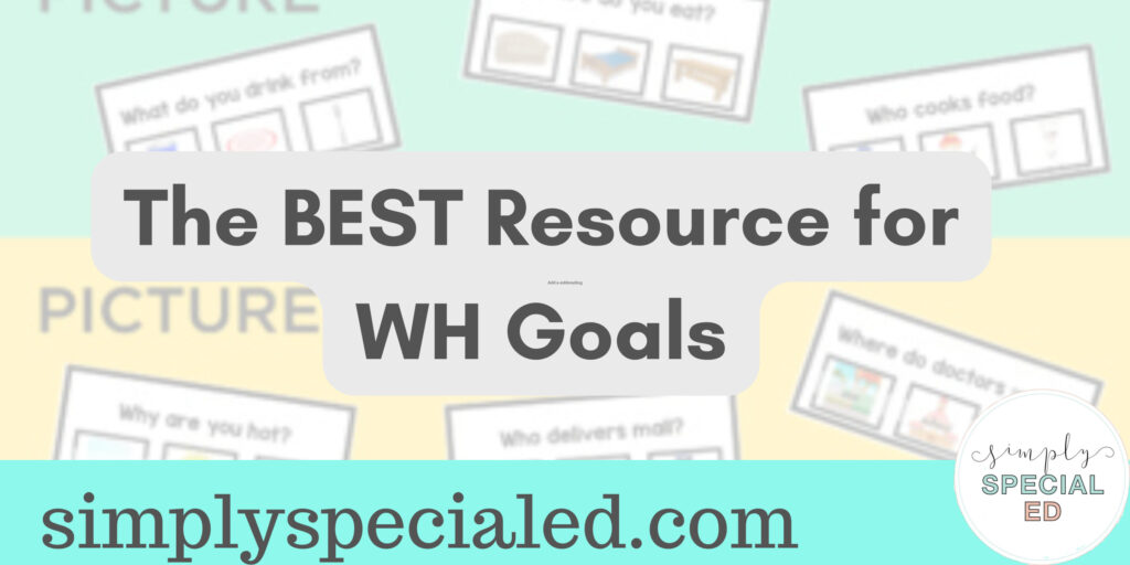 WH goals are simply the goals in a student’s IEP that tells them the types of questions that they need to be answering. All of the questions will begin with who, what, when, where or why. When we start a question like this, you let the student know what information they should be paying attention to.