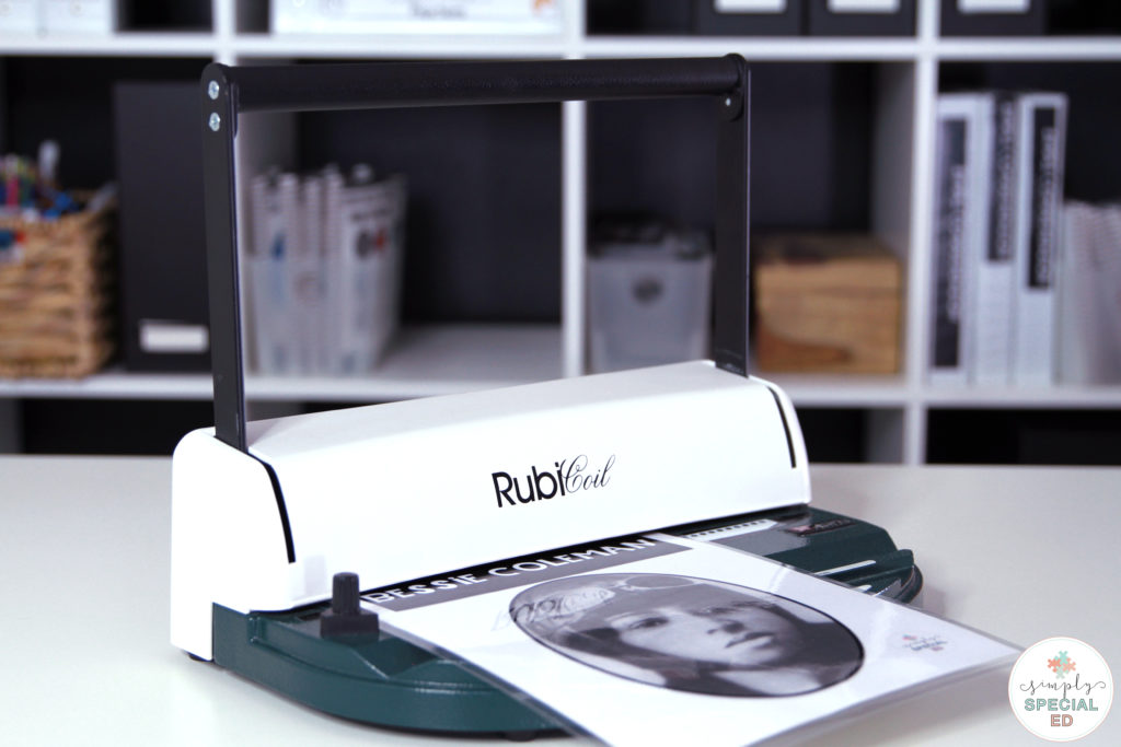 I bought my coil binding machine 5 years ago. Why? I was creating my own adapted books and visual pieces for my students and binding them using a comb binder at my school. You know… the one in the back corner of the dungeon like hallway covered in dust with coils that have been sitting there for years. NO ONE used this machine anymore. But I did… because I thought it was my only option!