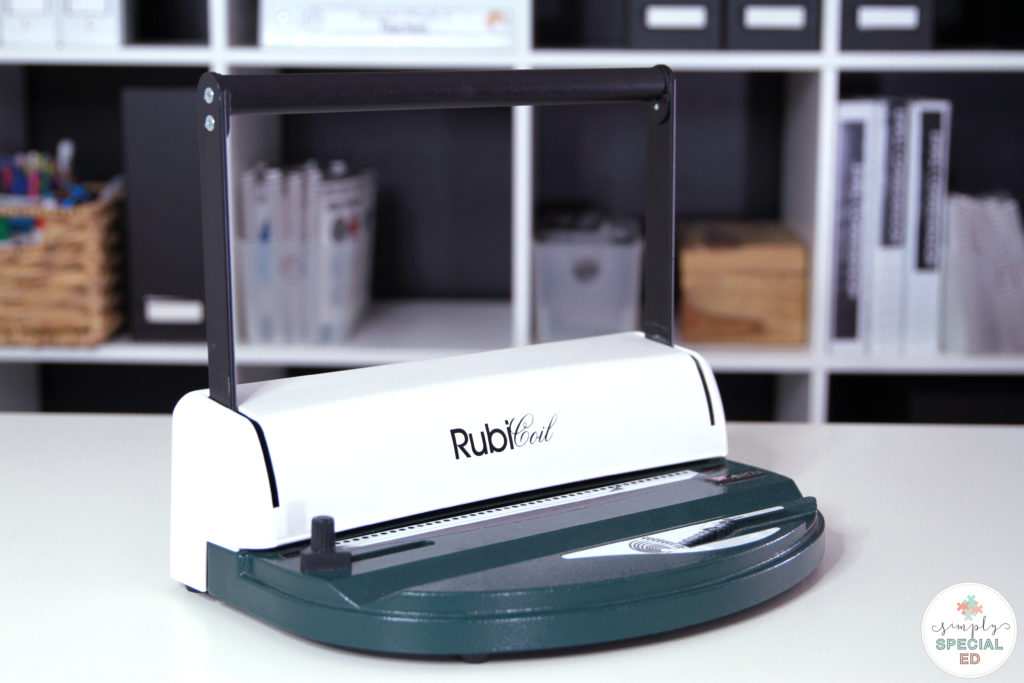 It wasn’t until a colleague mentioned coil bindings to me that I had my “ah ha” moment. I raced myself back to my desk and bought the rubicoil on amazon (affiliate link) right then and there. Full disclosure… it’s not cheap! But my adapted books that I spent hours prepping were constantly becoming “undone” by students. I lost pages and pieces, and hours of work and $ on materials. This investment was worth it for me… and I never had to rebind a resource again.