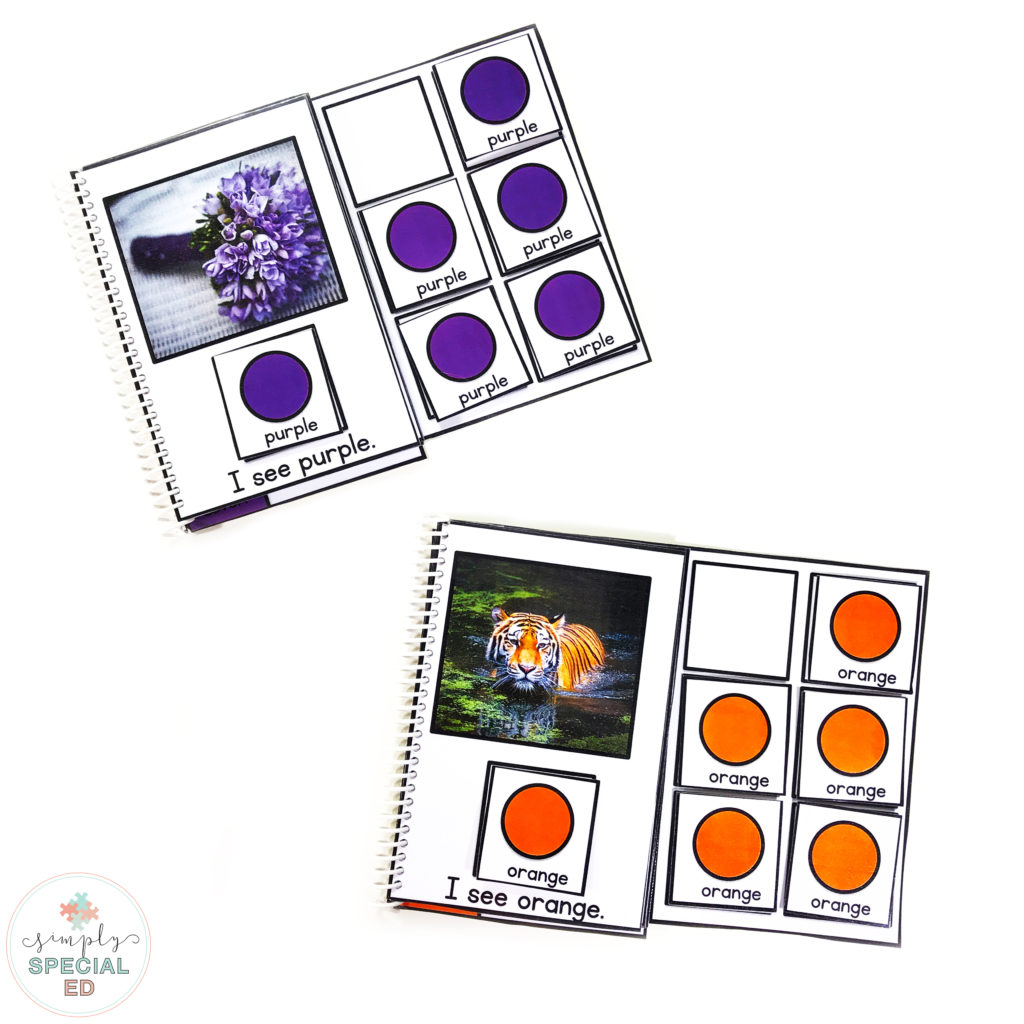+ Use for centers! If you have a student working on colors, have them use these books during centers and have a para take data on them.