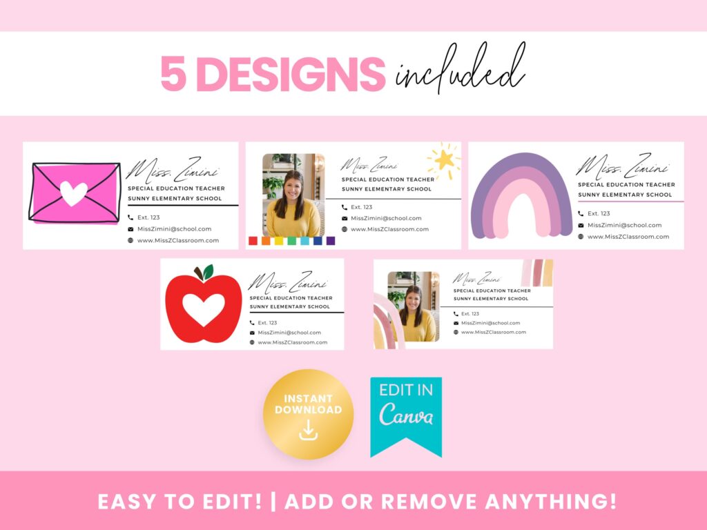 These templates are available to purchase on etsy and are fully customizable- that means you can edit the size, shape, color, fonts, and information to fit your needs. It only takes a few minutes to download, to customizing, and uploading on your email account!