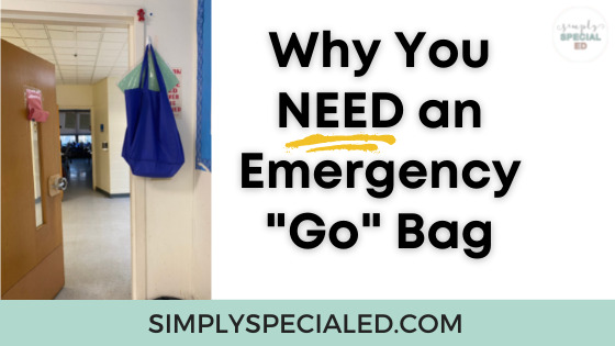 As a teacher of students with moderate to high support needs, it has been extremely helpful to have a “go bag” at the ready. What’s in a “go bag”? Well, everything that I would need if I was to need to evacuate my classroom. I like to call it a “go bag” because this is what I will say to my staff in case of an emergency… “Get the bag and go.” Keep reading to find out more about what is inside, where it is kept and when I grab it.
