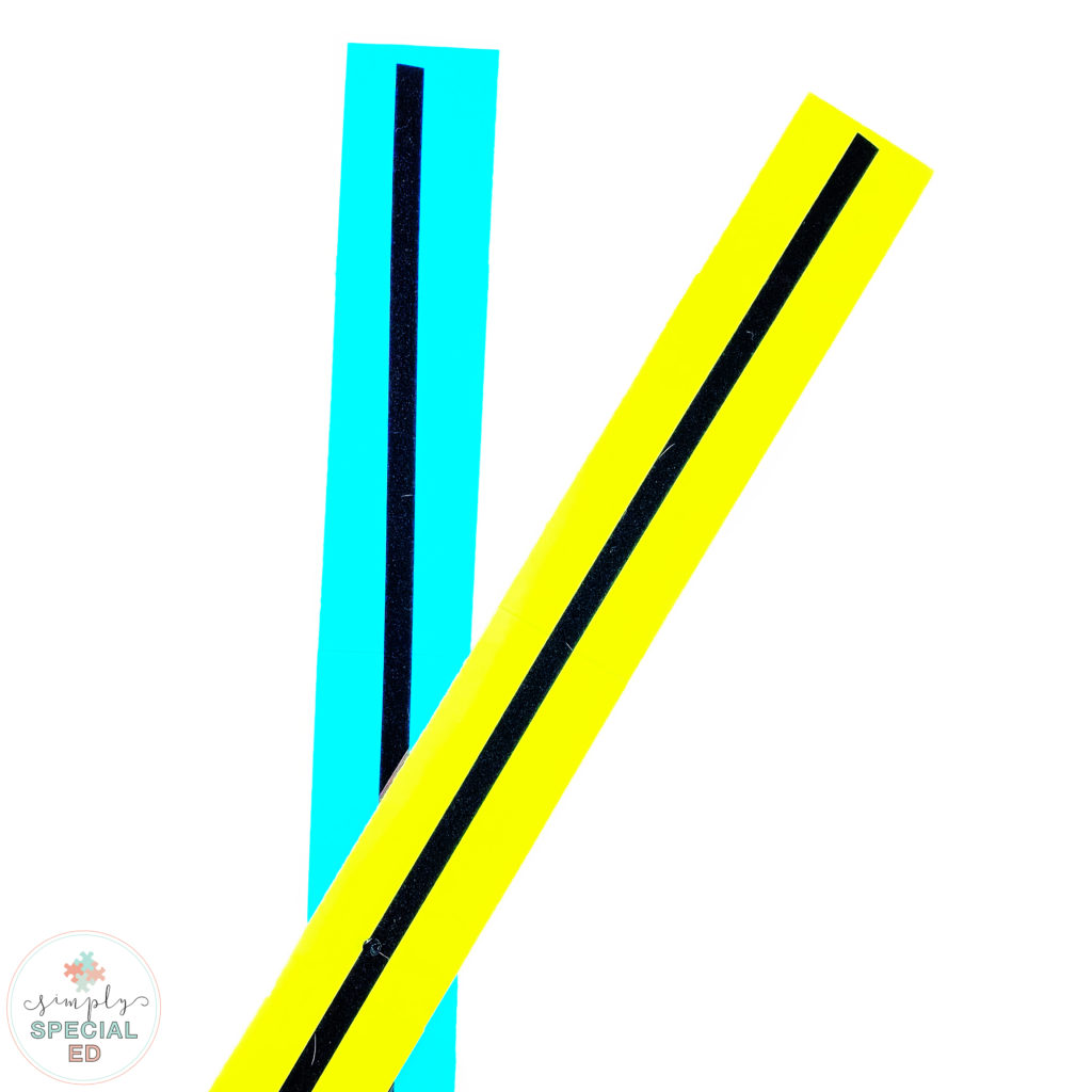 I am a huge advocate for black velcro. A few years ago “clear” or “white” velcro was all the rage. Yes, it looks best on our resources we spent a long time prepping and covers less of a piece… but think about our students. Some of our students may have visual impairments and NEED the visual discrepancy between the paper and the velcro in order to attach the piece to the page… and because of that I prefer black. You can find black velcro strips here.