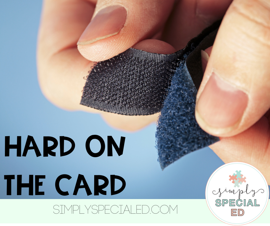 This seems to be a highly debated question in teacher facebook groups… but I’m here to tell you that HARD on the CARD is the ONLY WAY. Why? Because I want my pieces to stick to all surfaces… not just velcro. When I put hard on the card it can attach to carpet or my favorite… veltex!