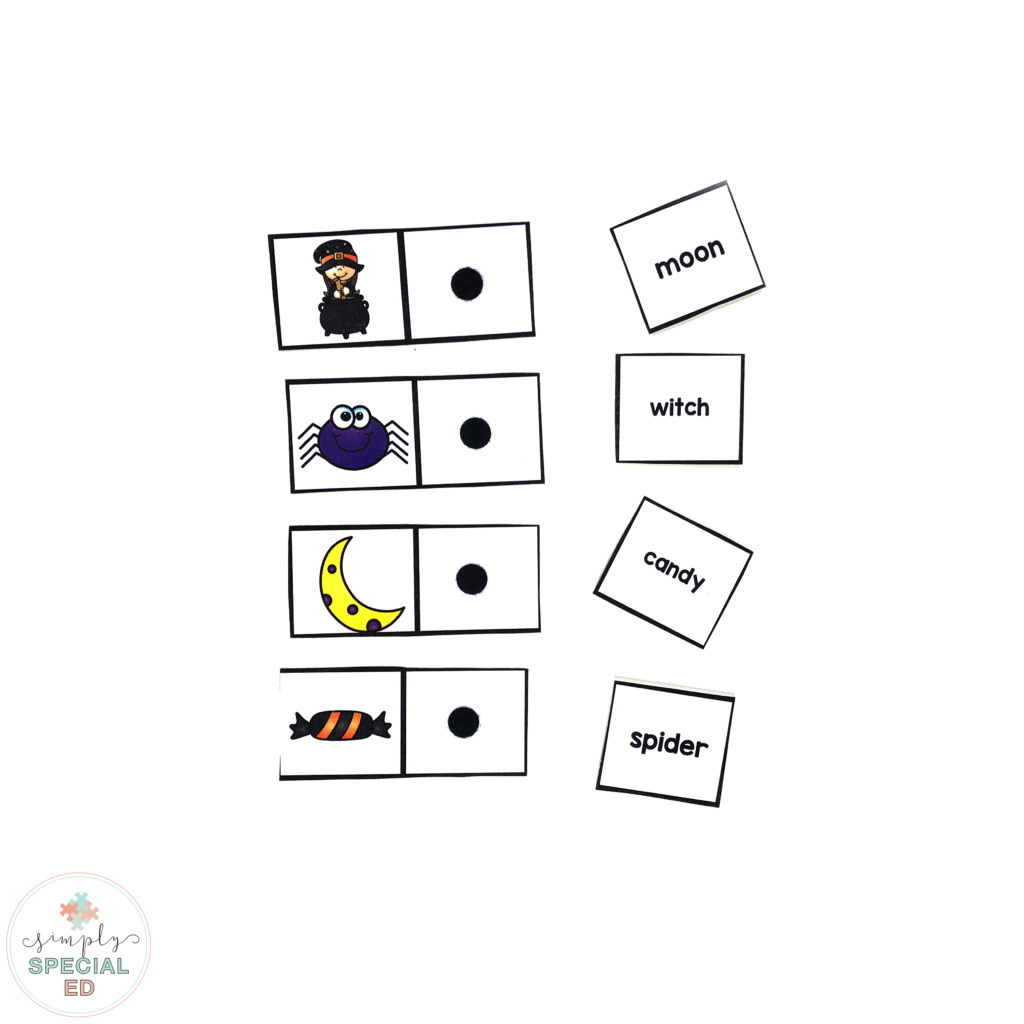 Two levels of matching are included in this activity, picture to picture and picture to word. This makes it easy to quickly adapt depending on a students level. This task box can be easily stored in a small plastic bin, like the one linked here (affiliate link), or in a shoebox! It it quick and easy to prep and will last forever with the right lamination! (hint, you can find my favorite kind here- it’s not scotch.) (affiliate link)