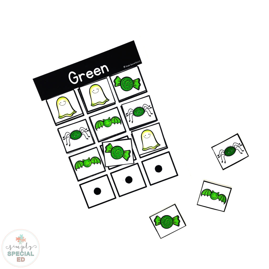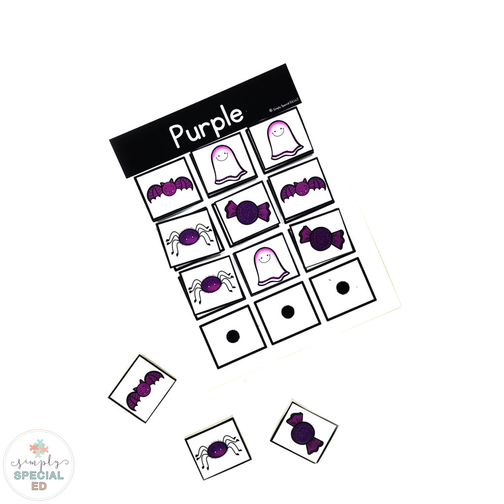 If your students are non readers you can give them a visual prompt on the sorting mat by adding one green and one purple to each mat as a cue!