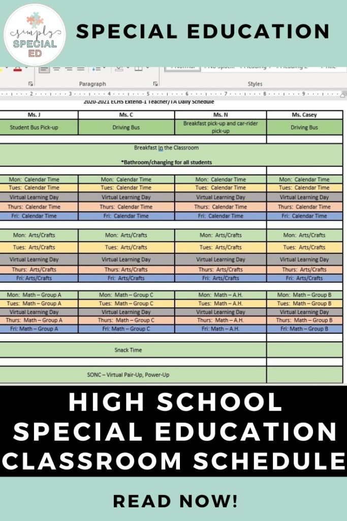 One of the most difficult parts of setting up your classroom is creating your classroom schedule. I’ve been teaching for 15 years, and I can tell you that I have never used the same schedule twice. I’m always making changes to it! I can also say that our classroom schedule at the beginning of the year is never the same as the schedule at the end. As Special Education teachers, we’re constantly adapting to changes, so being flexible about making schedule changes is a priority. Below I’m going show you a sample of my high school classroom schedule. I hope it helps and gives you ideas for your classroom.