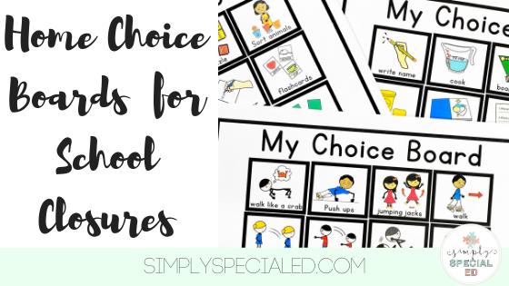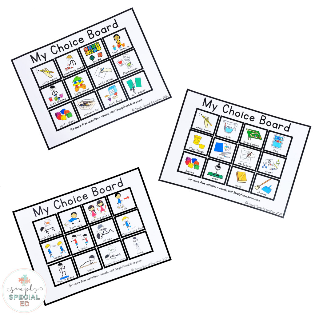 Choice boards are a great way to use visuals, be structured, and give choices. The best part? All of these things greatly reduce behaviors!