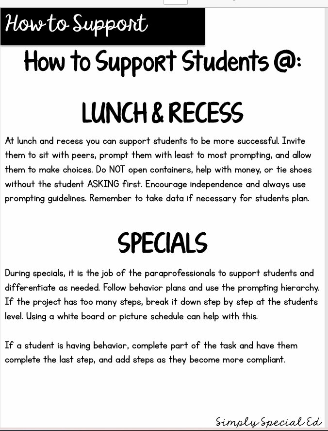 Going along with this, providing each of your paras with a binder that includes important information can be so helpful. The binder can look different based on your classroom and school.