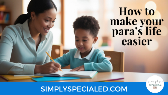 If you are involved in the world of Special Education at all, you know just how important paraprofessionals are. Paras help make the day run smoother. They form great relationships with their students. If you are someone who is lucky enough to work with a para, here are some ways to make his/her life easier!