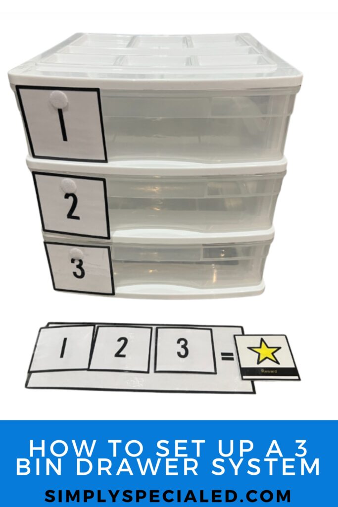 Starting a 3 drawer bin system in your classroom is a great way to introduce independent work to students. You can create 1 system for all students to use or 1 system for each student. I’ve seen many teachers keep 3 drawer bin systems next to or on students’ desks.