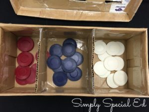 When students are done with the bin, what do you want them to do? Some students may like to take apart the task and put them back, while I like to have students place the bin in an “all done bin” to mark completion and move to the next on their schedule. This way, as I put them away I can check their work.