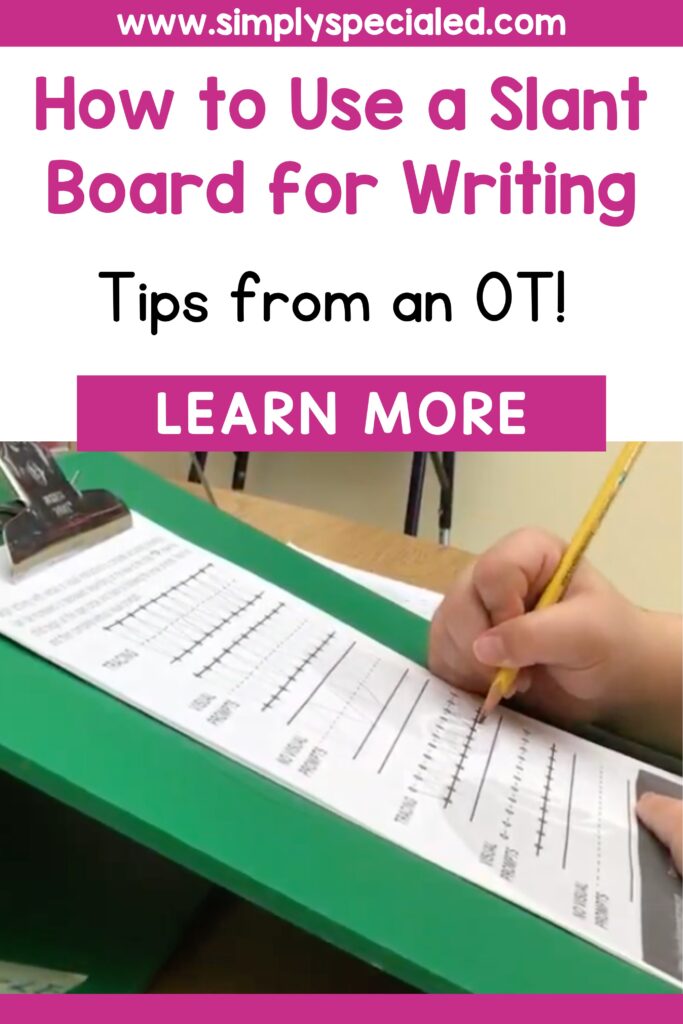 Don’t feel like you need to purchase an expensive slant board! You can always turn a 3 ring binder on its side! Check out my Instagram Reel on how to use the Attento Board to DIY a slant board [they can be kind of pricey!]. Pair the slant board with some FREE Simply Special Ed resources for a budge friendly way to work on these skills. Leave any question in the comments!