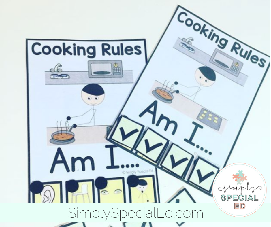 Token boards also work for specific activities. Sometimes you may need a token board that is specific to a certain activity. If cooking is hard for a student, having a token board with specific reminders for that activity is important! This board reminds students to listen to the directions, stay in their seats, watch everyone take turns, and to keep your mouth quiet (no coughing, tasting until the end). They can earn 4 tokens during the cooking activity to earn a preferred activity afterwards.