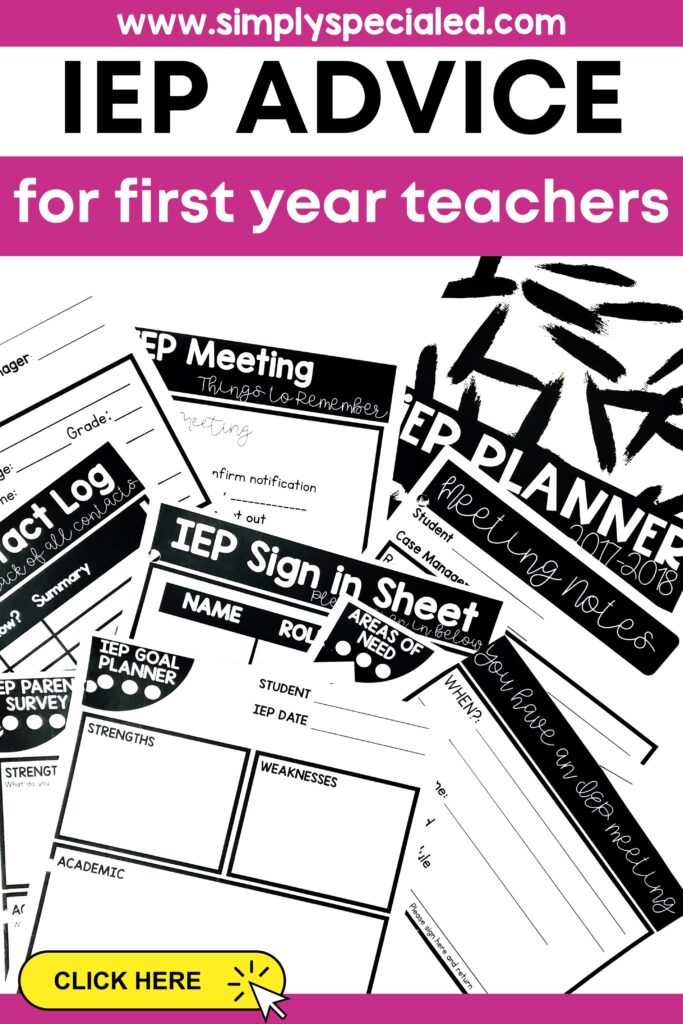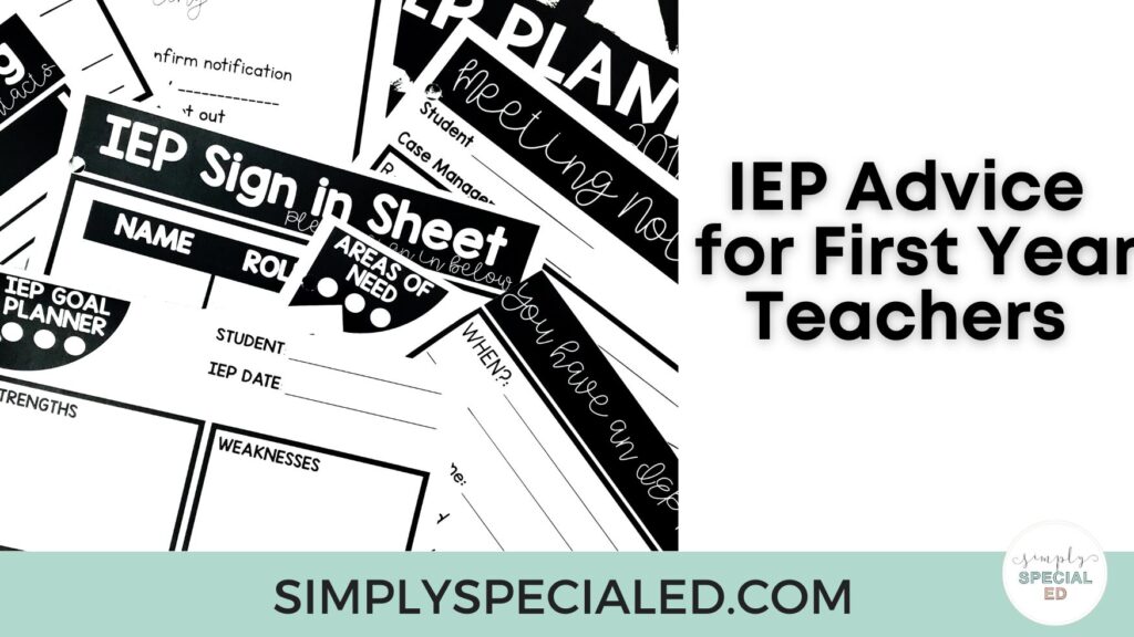 If you are a first-year special education teacher, first of all, CONGRATULATIONS! You may feel excited this back-to-school season. Once you are faced with all that you need to prepare before the first day of school, the excitement may turn into stress. Feeling this way is normal, and you’re not alone. When I was a first-year special education teacher, I remember feeling highly overwhelmed, especially around planning and running IEP meetings. I wish someone would have given this first-year teacher some IEP advice. Luckily, I found Simply Special Ed’s Simple IEP Binder shortly after. It was a game changer, helping me feel prepared for every IEP meeting. I still utilize this resource to this day! In this blog post, I share three pieces of IEP advice for first-year teachers featuring the Simple IEP Binder so they can stay organized in preparation for IEP meetings.