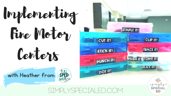 Hello! My name is Heather Cacioppo and I am a middle school functional life skills teacher. I first saw Alyssa’s Simple Fine Motor Centers on her Instagram. I thought those were AMAZING! Immediately I thought of my students fine motor abilities and what skills they needed to work on in order to be successful in the future. It can be difficult for my students to complete worksheets when they can not draw a line to match, cut or glue pictures or words in the correct position. I also thought about how it would be awesome for my students to have “office skills” like hole punching and stapling. These Fine Motor Centers were the gateway to life-long successes! I knew I had to have them in my room starting the next school year.