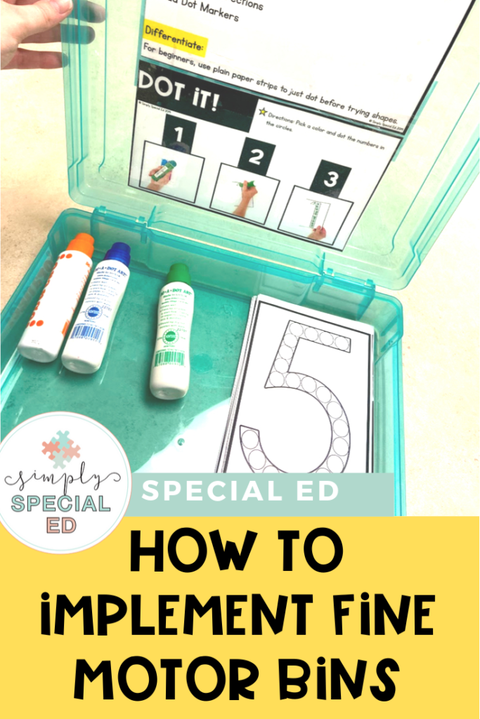 I have my boxes set on a shelf in my classroom all labeled and easily accessible. In my room, we have Fine Motor Wednesdays. My students know that during this time we work on our fine motor skills for 45 minutes. These have been a great activity to have either my students make their own choice or I make a choice for them to complete a box. Students typically spend 15-20 minutes on a box, then we rotate. Each student completes 2-3 boxes during this time.