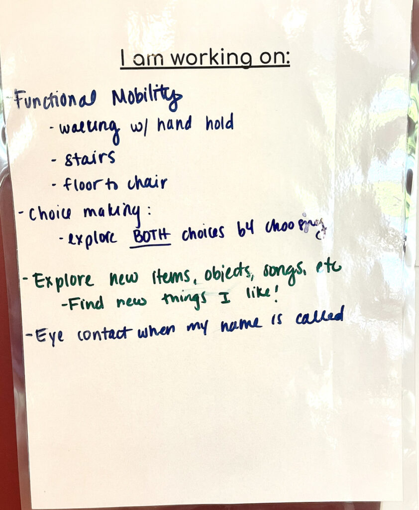 Additionally, family communication is a core principal of the Essential Skills program. Many of our students have medical needs that make them more susceptible to illnesses, seizures, and medication changes. My co-teacher, classroom nurses, and myself share our phone number at the beginning of the year for immediate communication with families.