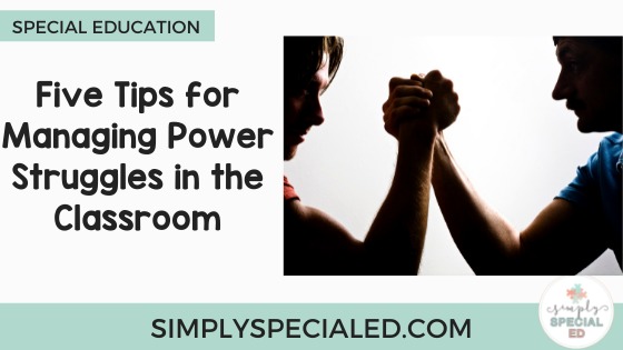 When power struggles begin, they are often maintained by teacher response. Without realizing, many teachers are actually providing negative reinforcement when they engage in a power struggle. Even though the student is receiving negative attention, it’s still attention. And because of the time that it takes to go back and forth, the student is escaping the activity that they don’t want to do.