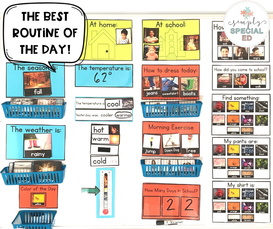 The morning transition from home to school can be tough on everyone. Having a routine that is set in stone that is predictable and structured starts your day on the right foot, reduces behaviors, and is rewarding for all. Even if you are out sick, your class will be able to function with your morning routine as normal!