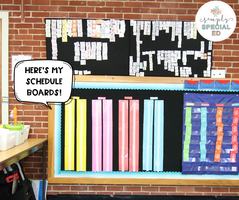 I would also update my quick glance schedule board. This is used for at a glance things where students would have to leave the room. Therapies, specials, and inclusion are housed here for all staff to view at a glance.