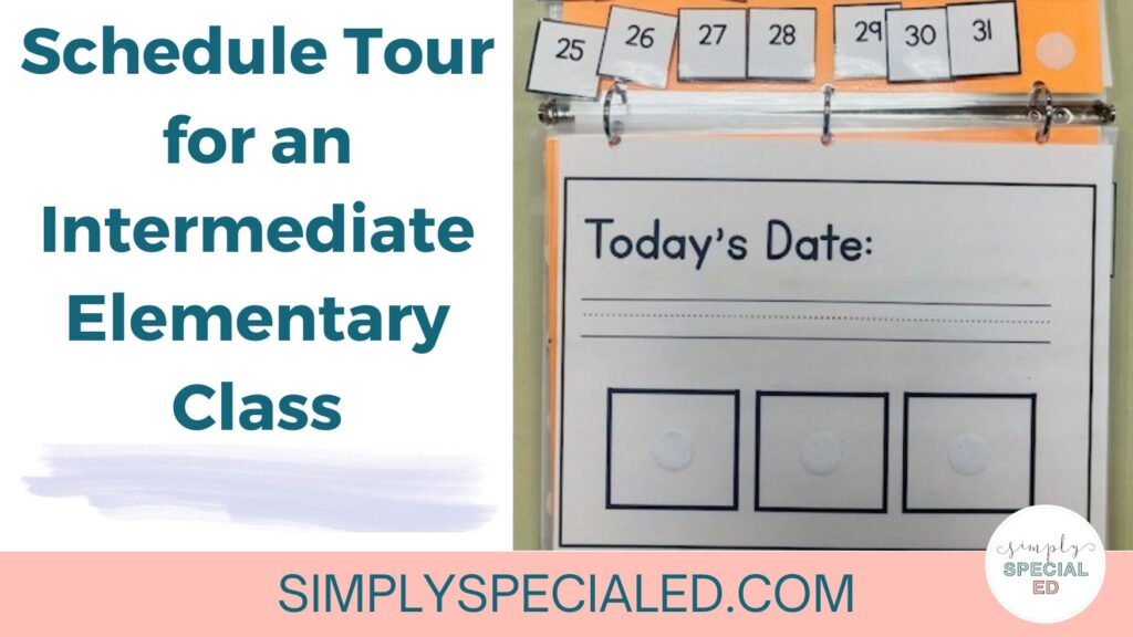 Welcome to my classroom! I teach a self-contained class for students with multiple disabilities. I work at a public intermediate school, which is grades 3 – 5, and this year I have three students in each grade level. Let me tell you a little bit about our schedule and how the day goes!