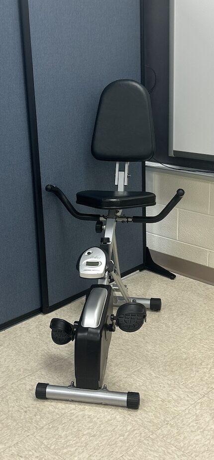 We have some workout-type equipment like stationary bikes as well. We use these items in our secondary buildings most where are students are older [and bigger!]. Borrowing tools like workout/resistant bands or using the weight room can also be really great options for older students! They tend to enjoy more exercise-related plans to meet their needs as compared to the play-based approach we use with our younger students!