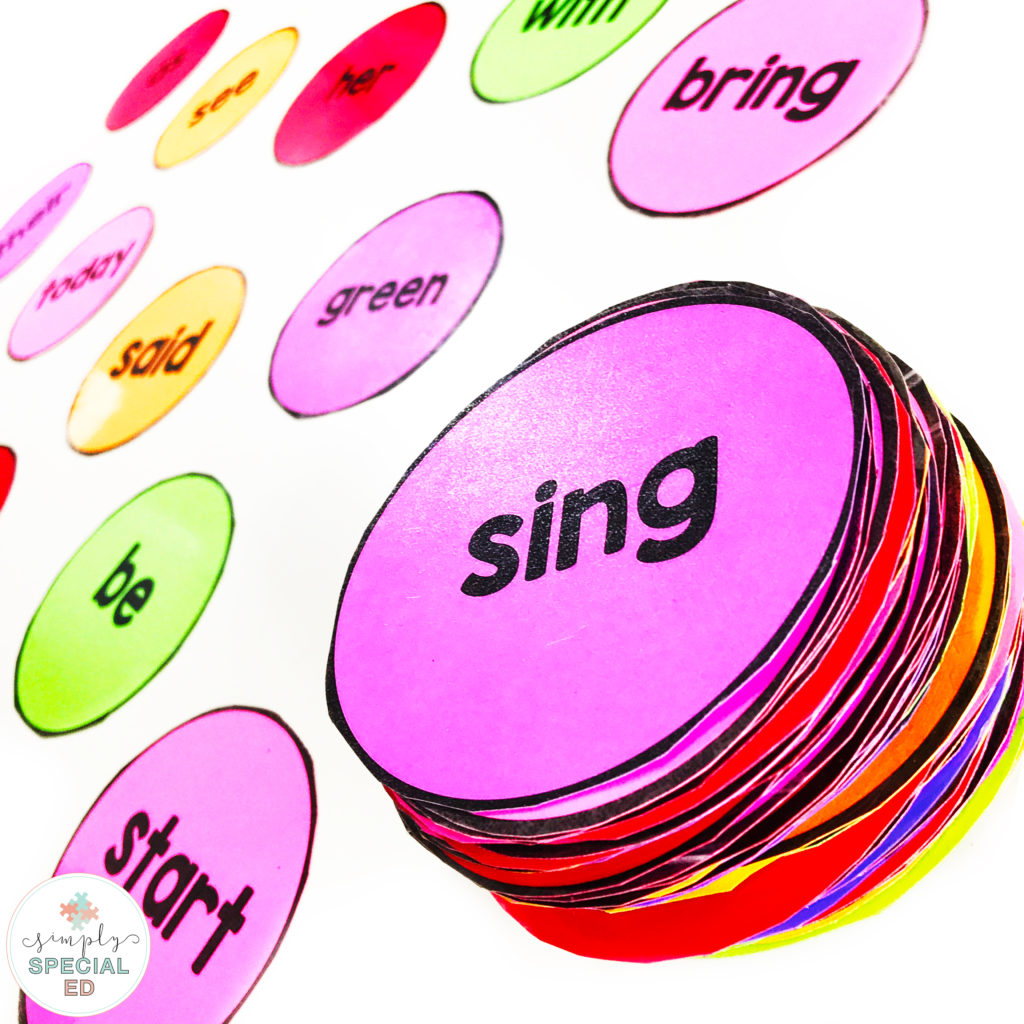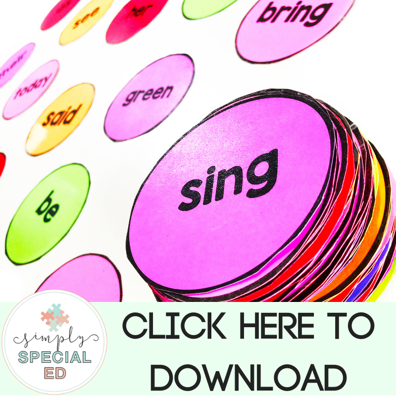 If you are working on sight word fluency, your students have sight word goals, or you are wanting your students to become more independent in reading – this activity is perfect! We cannot just present sight words in the same way every day, we cannot just run flashcards and expect our students to display the skill in every setting. Working on sight words in a variety of ways, settings, and with different materials is the perfect way to get them to generalize!