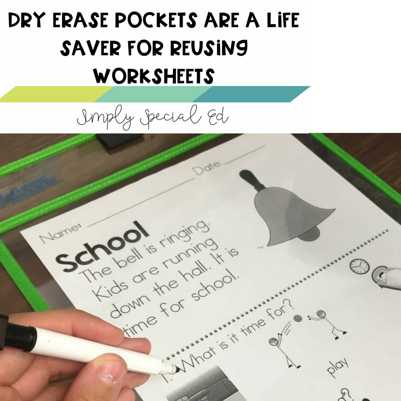 Dry erase pockets are one of my biggest life savers when it comes to this. You may have students that are beyond fine motor tasks like puzzles and put ins, and they need some higher level worksheets for morning work.