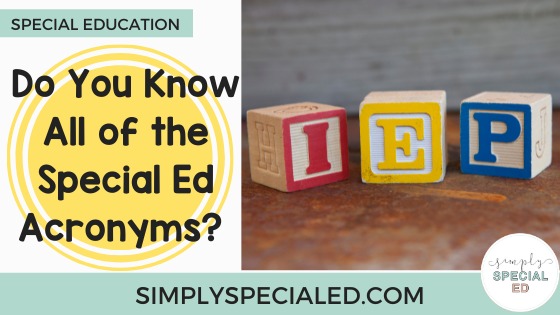 Okay, so tell me how you did! Did you know them all, or did you learn a few new acronyms? What other acronyms should we add to the list? Let me know in the comments! To grab a FREE handout full of all these acronyms and their meanings, then click HERE! If you’re a new teacher looking to learn more, check out the New Teachers tab on Simply Special Ed!