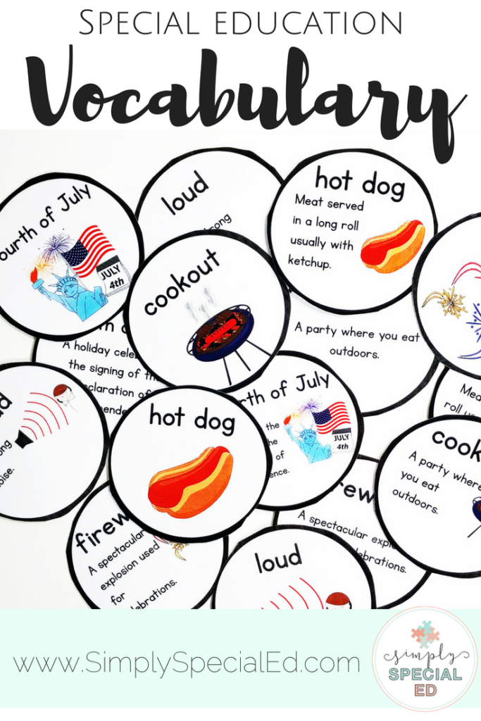 Teaching vocabulary to students with special needs can be challenging. But we must always remember to keep challenging our students- we don’t want them to work on picture to picture matching for 12 years- vocabulary is a great way to take the skill to the next level. Here’s how I teach it.
