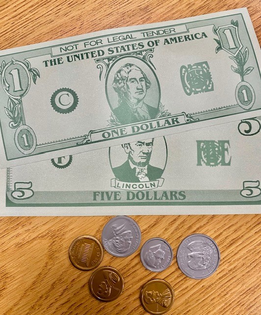 Presented with a price, STUDENT will count the exact amount of bills and dollars needed to make a purchase.