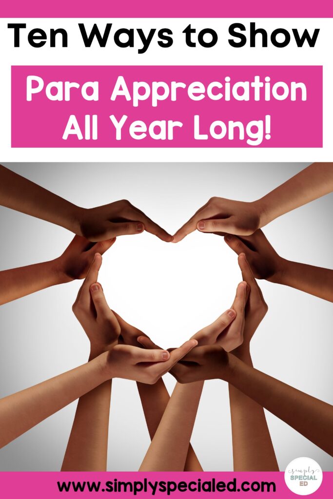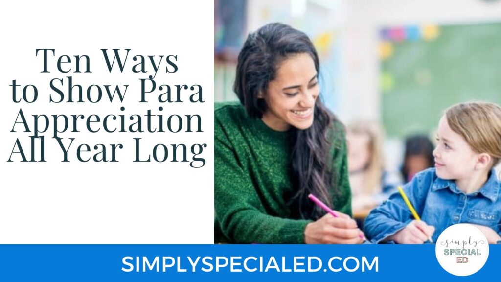 Paraprofessionals are vital to making special education classrooms run smoothly! The amazing paras I know are some of the hardest working staff members with the biggest hearts. As teachers, we can show some para appreciation to paras all year long! Read on for ten simple ways to show paraprofessionals that we care.
