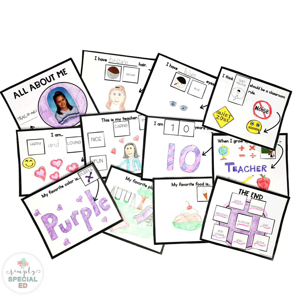 Another simple activity we do each day (usually during centers to keep the workload simple) is a page in our All About Me book. Each page has visual picture responses and also leave space for the student to draw pictures, cut things out of magazines, write or do anything they want to answer the prompt! At the end of the 10 days we share our books with teachers and friends (and sometimes we present them during morning meeting in our inclusion classes!)