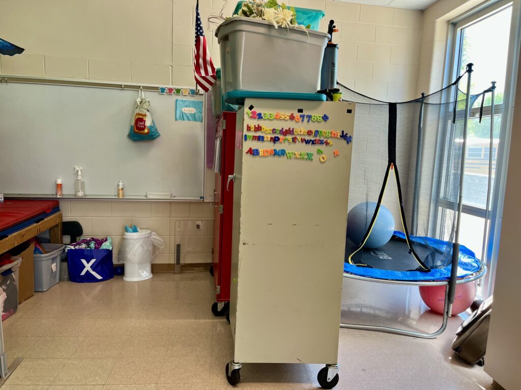 - Movement input (squeeze machine, sensory path, trampoline)