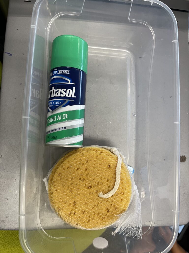For this sensory bin I wanted to try and make it a hands on experience for my students. I started by having them spray shaving cream into a bin. I then had a cup of water next to the bin, and I would have my students dip a sponge into the cup of water and get the sponge soaked with water. After that, they would squeeze the water onto the shaving cream and watch the water drip out of the sponge onto the shaving cream to resemble that it was raining. Shaving cream and a sponge is always something that is in my classroom as well, making this a really time and cost efficient sensory bin that the students loved!